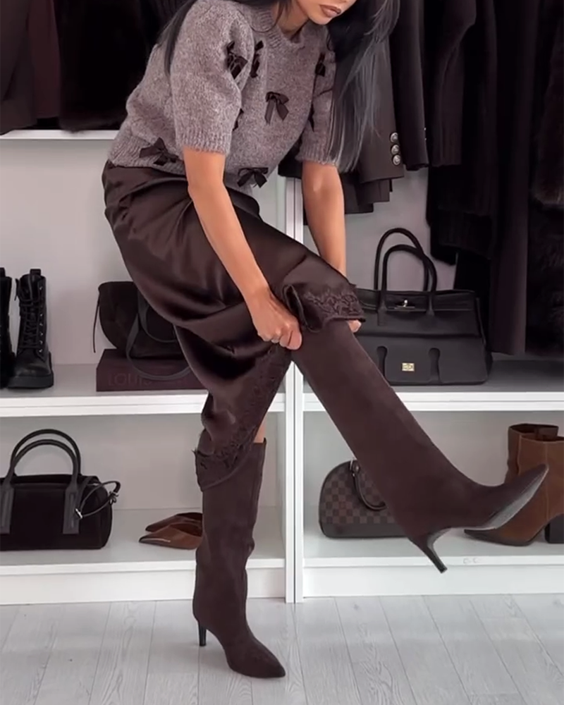 Bow-Decorated Crew-Neck Pullover