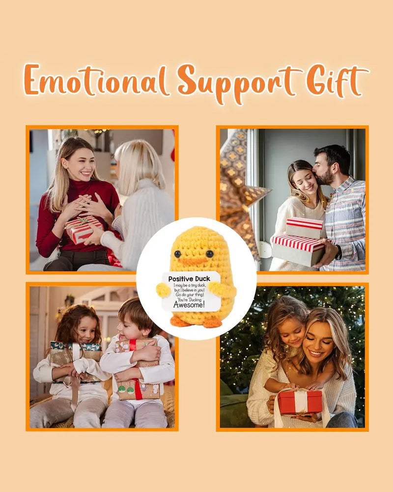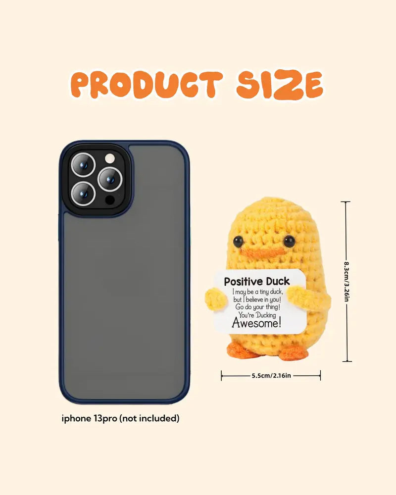 【Handmade Craftsmanship】: This crochet positive duck is meticulously handmade, ensuring a unique and special touch that machine-made products simply cannot replicate.【Emotional Support】: Each duck comes with a positive card, making it an ideal gift for providing emotional support and encouragement during tough times.