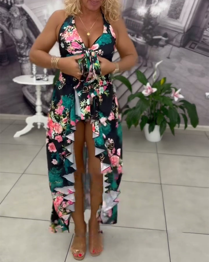 Sexy Printed Sun-Protective Three-Piece Swimsuit