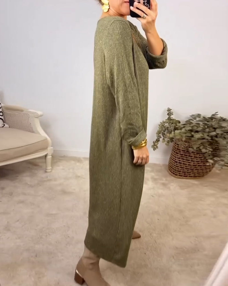 V-neck solid color elegant dress