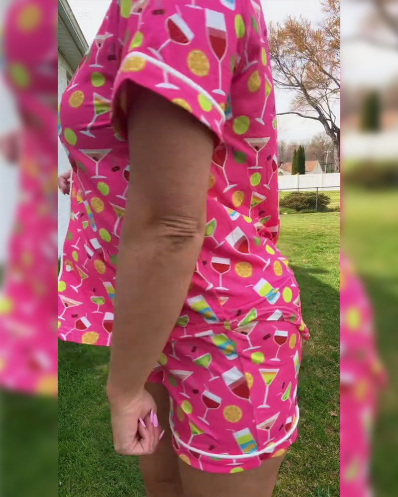 Wine Bottle Print Casual Two-Piece Sets